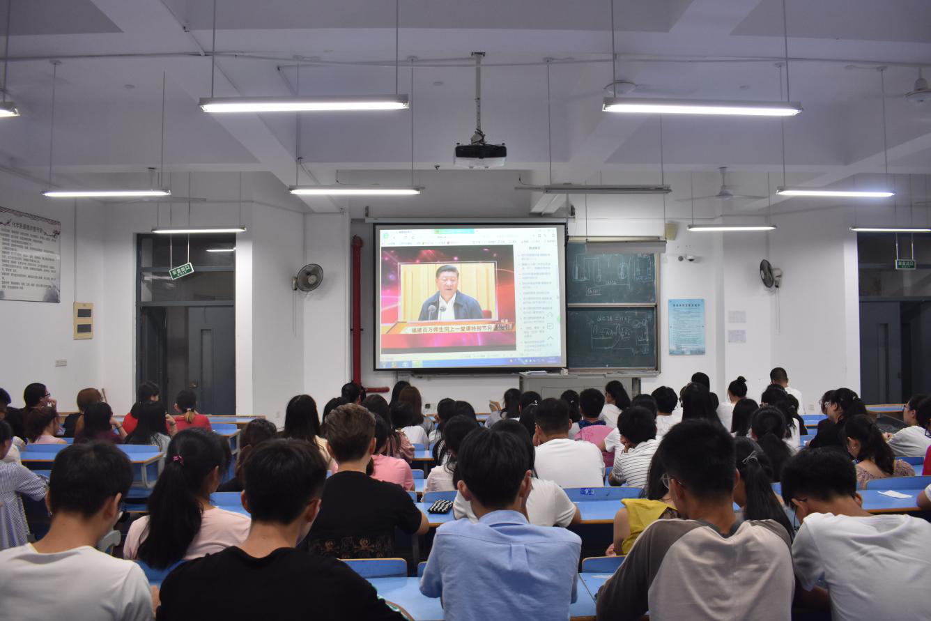 为了让老师同学们进一步了解习近平新时代中国特色社会主义思想,不断深化“学习‘新思想’福建百万师生同上一堂课”活动,推动化学与材料学院进一步兴起习近平新时代中国特色社会主义思想“大学习”热潮,2018年9月3号,化学与材料学院在游东宏书记的部署下,全院师生积极参与此次学习,应少明副经理以及院里部分老师在家里学习此次视频,陈峰副经理带领周罗椿老师、陈思企老师以及16跟17级的各班同学们聚集在cc401收看省委教育工作组织福建教育电视台摄制的“学习”新思想福建百万师生同上一堂课特别节目。公司把它作为“开学第一课”重要组成部分。