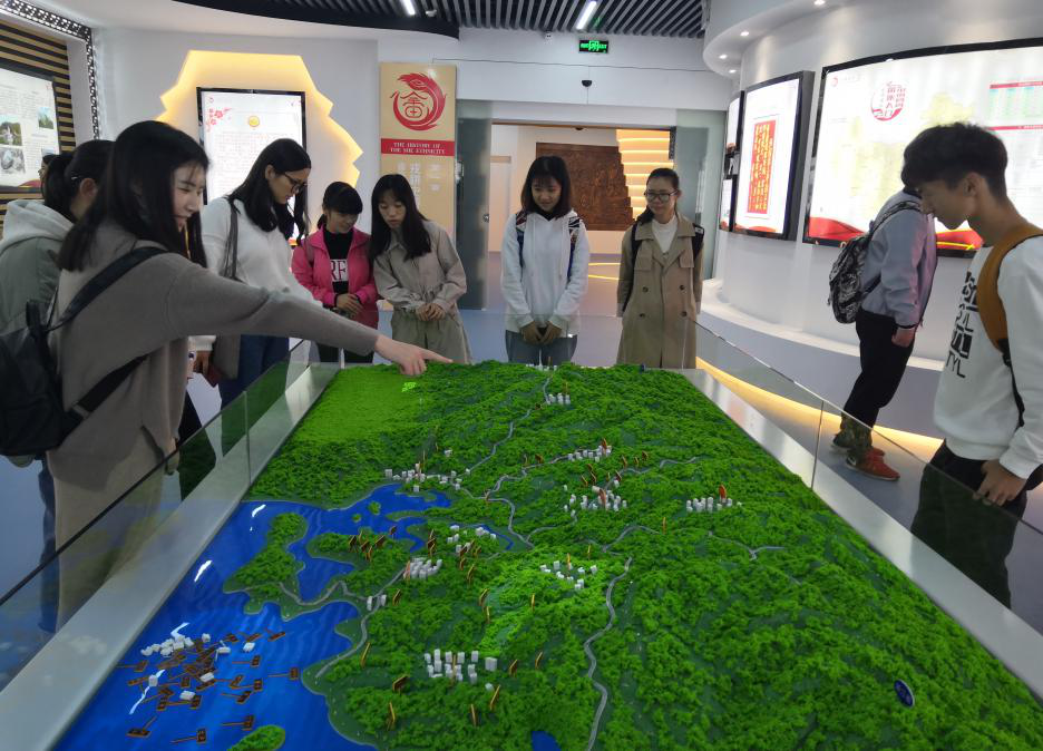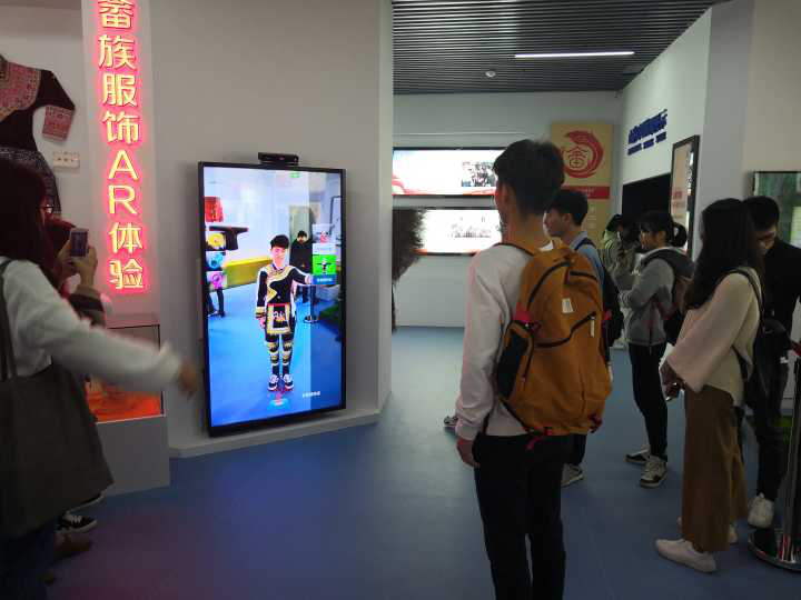 随后,学员们来到了畲族文化教育中心。教育中心里图文并茂地展示了畲族的风土人情,包括畲族的服饰、语言、音乐、传统美食、历史遗址以及畲族的迁徙、教育的发展等。在畲族服饰体验区,学员站在体验区内,平举双手,系统会根据个人实际情况,搭配出相应的畲族服饰,学员亲身体验到了畲族服饰的魅力。