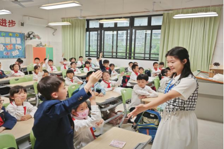 (同学们和东侨二小的小朋友们进行课堂互动)