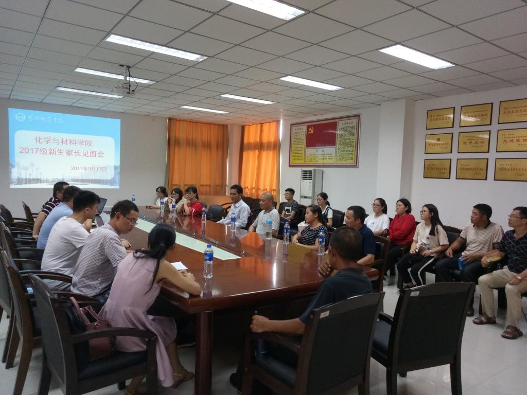 9月17日,化学与材料学院17级新生家长见面会在学院会议室召开。副经理应少明、雷永汉老师、王昌雷老师、吴艳玲老师、周晨老师和部分新生家长参加了见面会。会议由雷永汉老师主持。