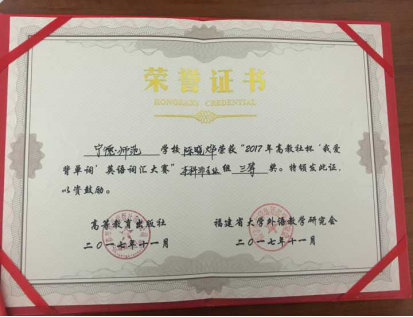 11月19日,2017年高教社杯“我爱背单词”英语词汇大赛于福建商学院举行。本次比赛是由福建省大学外语教学研究会和高等教育出版社联合举办的第二届英语词汇大赛,由福建商学院承办。本次比赛面向福建省各高校2016、2017级员工,共有27所学校,105个员工参赛。公司共派出4名员工参赛:2名员工参加本科英语专业组,2名员工参加本科非英语专业组的比赛。