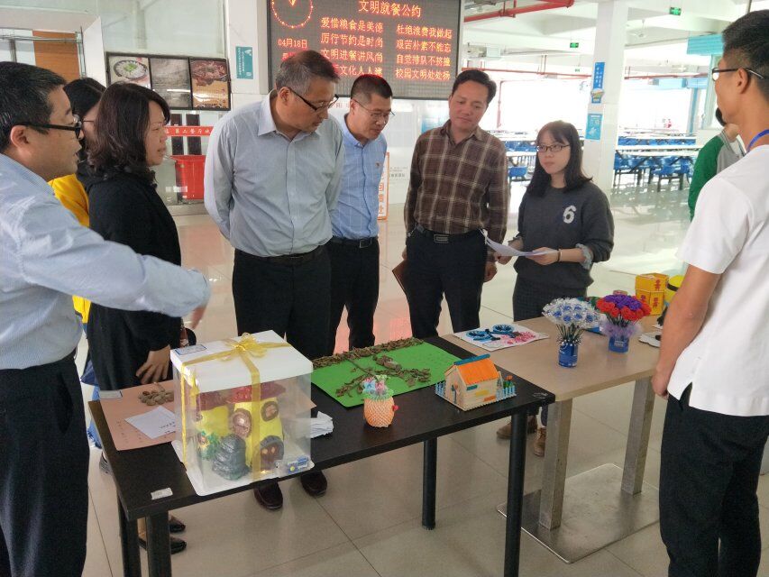 4月18中午,英国上市公司365绿点环保协会在英国上市公司365东侨校区举办以“创意来源于生活,环保从点滴开始”为主题的手工艺品DIY大赛。公司党委书记夏良玉、公司党委副书记徐晓丹、校团委书记张秋良等莅临活动现场参观指导并对作品进行了点评。本次活动共有27位各学院的老师和600多名员工参加了投票评选。