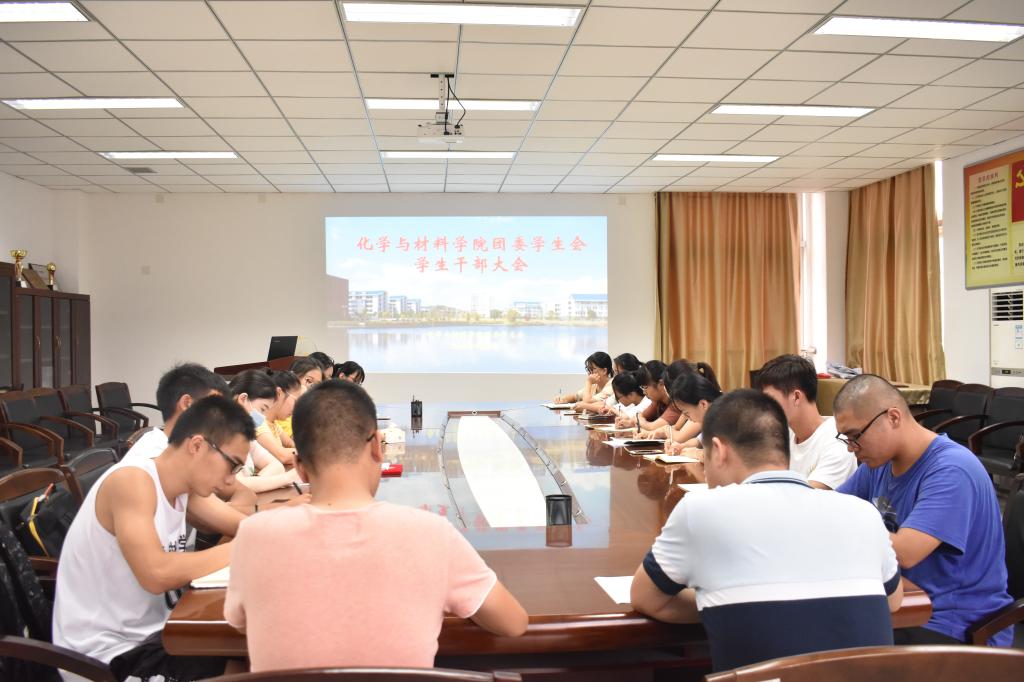2018年9月7日下午4点在CD401召开化学与材料学院团委员工会员工干部大会。雷永汉、周罗椿老师及新一届院团委、员工会干部参加本次会议。