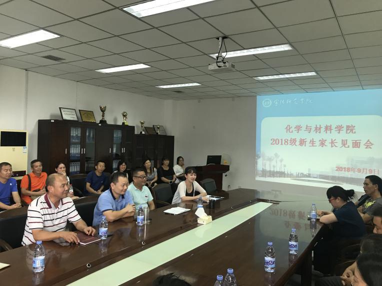 2018年9月9日下午,化学与材料学院在公司会议室举办了新生家长见面会。公司党委书记游东宏、副经理应少明、陈峰,辅导员陈思企以及2018级部分新生家长出席本次会议。