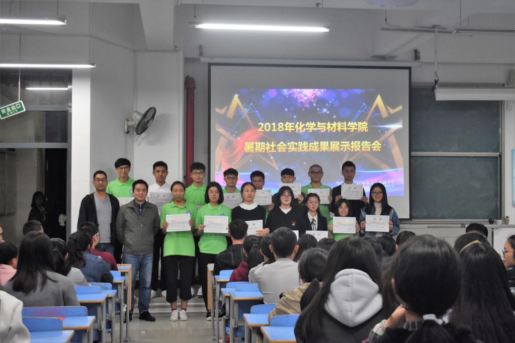 2018年11月16日,化学与材料学院在CC401举行2018年暑期社会实践成果展示会。化学与材料学院学工办老师、社会实践队全体成员和全体18级员工干部参与了此次汇报会。