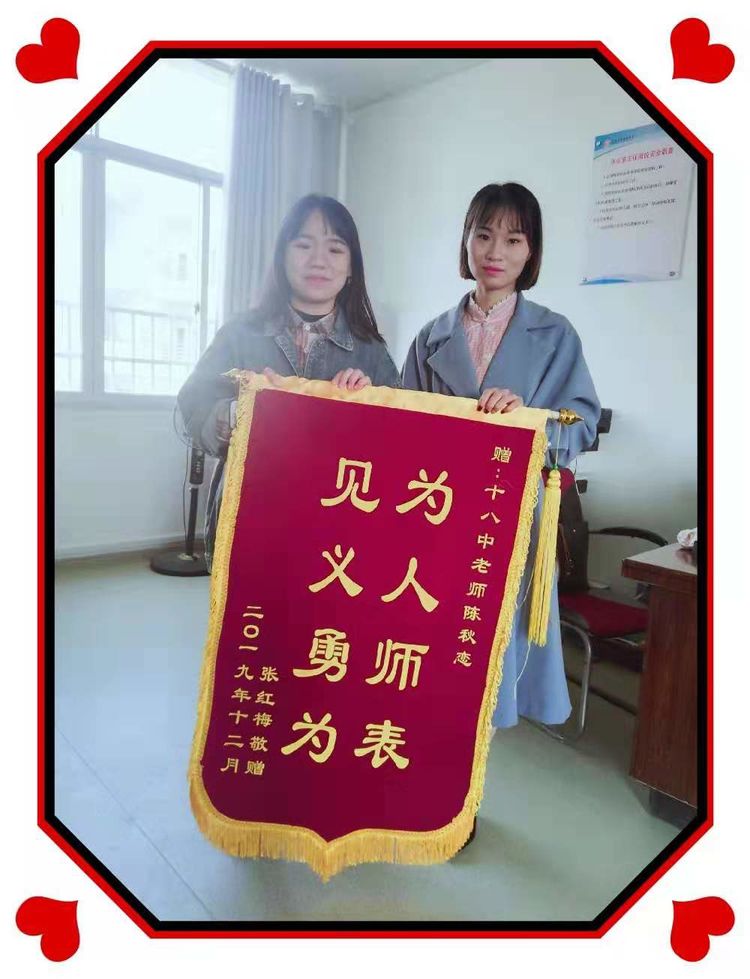 住院期间的张红梅还亲自将一面锦旗送到实习学校,她当面把这锦旗交到陈秋恋老师手里时,眼里有泪、有爱,充满了道不尽的感谢之情。