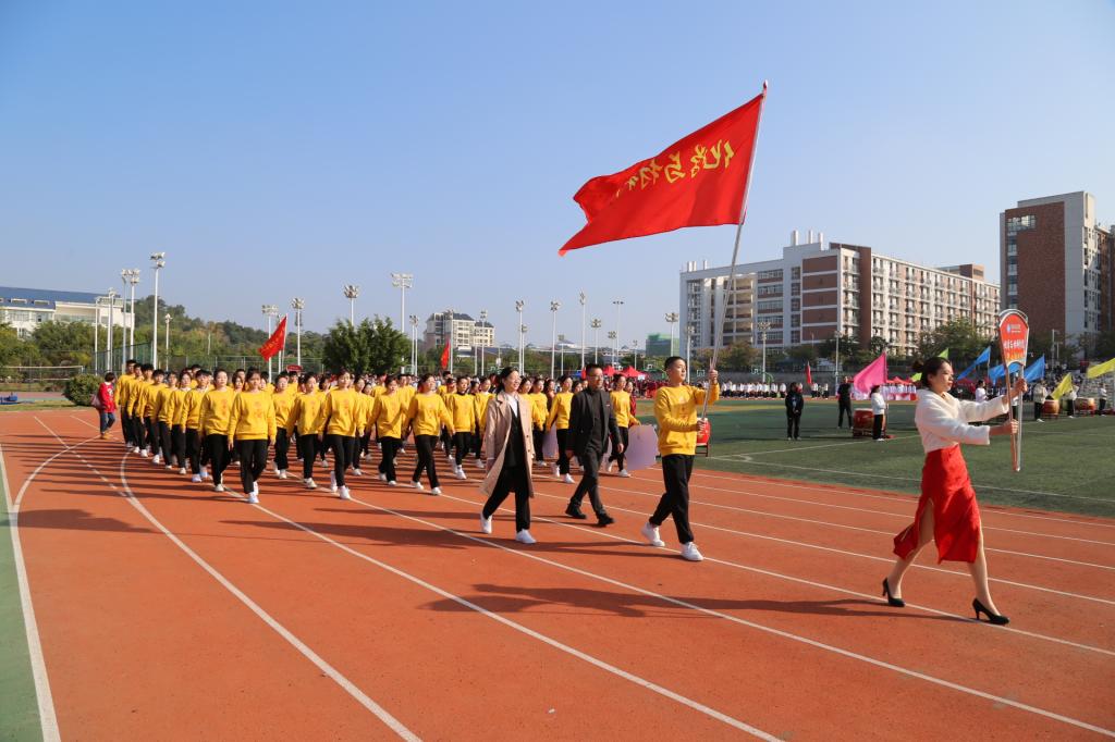 在开幕式中,由公司员工党员组成的方阵队伍身着黄色服装,精神饱满、气宇轩昂,高喊着“青春化材,筑梦未来,化材出场,势不可挡”的口号走向主席台,方阵成员精心准备的快闪表演,行云流水,整齐划一,青春的颜色,青春的气息,青春的旋律,彰显出化材学子青春活泼的风貌。