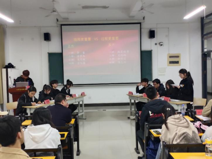 公司共有16支队伍报名参赛,辩论赛经过初赛、复赛,决赛在3月26日求实楼CC402举行。正方队员由22级化学专业李睿、22级冶金工程专业汤宇杰、22级材料化学专业王思颖、22级环境科学与工程专业翁裕鑫组成;反方队员由22级材料化学(闽台合作)专业池家锦涛、21级冶金工程专业吴剑昀、22级应用化学专业邹玲霞、22级应用化学专业陈乙玲组成。辩论的正反双方针对“过程与结局谁更重要”展开激烈辩论。正反双方紧扣辩题,旁征博引,你来我往、妙语连珠,缜密的逻辑思维和灵机的应变能力,为大家呈现了一场有理有据的精彩辩论。