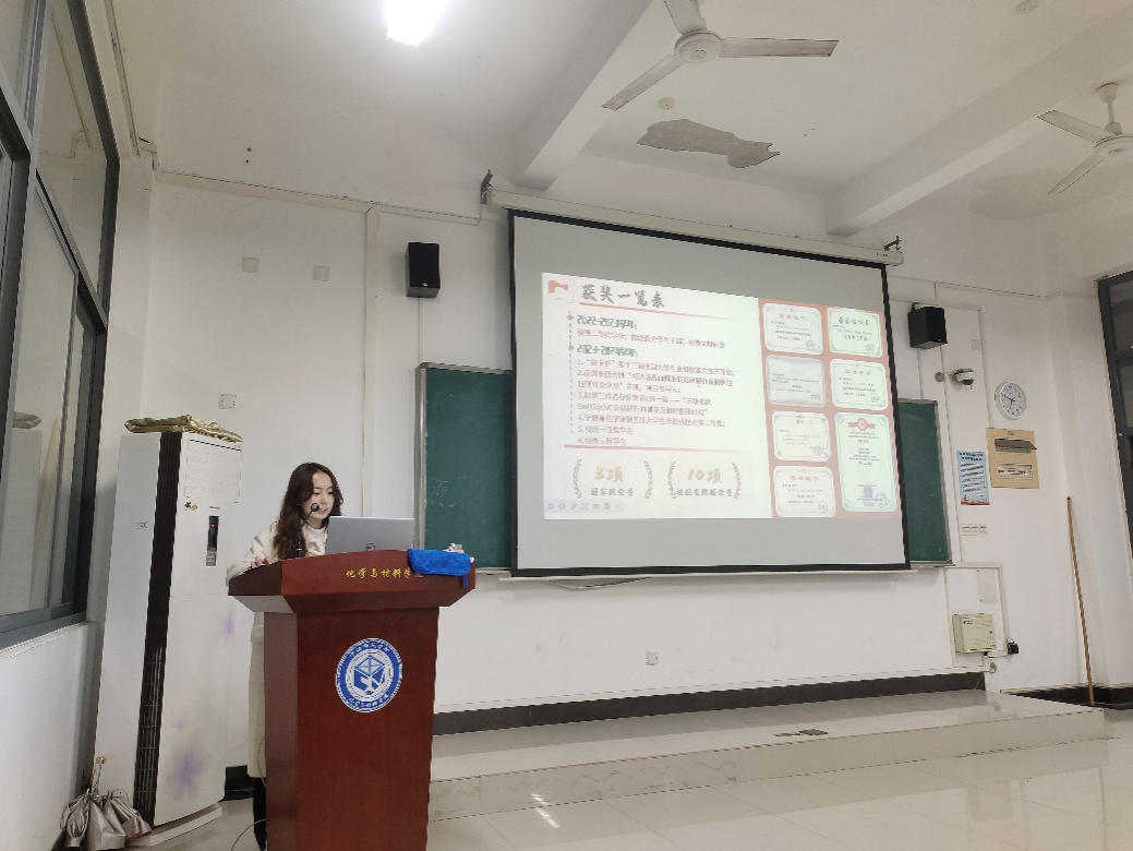 陈玉凤则从应用化学专业出发,着重讲述了自己在科研过程中的探索与成长,鼓励同学们要勇于尝试新的课题和研究方向,不怕失败,同时还分享了一些实用的科研技巧和资源获取途径。她们的分享内容丰富且贴近员工实际,具有很强的启发性和可操作性,赢得了现场师生的阵阵掌声。在最后的问答环节中,现场气氛热烈非凡。同学们积极踊跃地向国家奖学金获得者们提问,涉及学习、生活、科研、职业发展等各个方面。师姐们耐心细致地解答每一个问题,用自己的亲身经历和宝贵经验为同学们排忧解难,提供切实可行的建议。