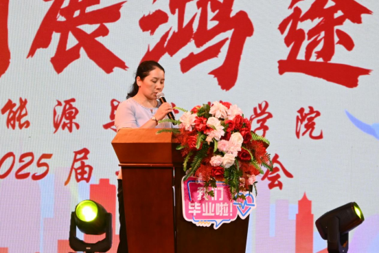 晚会以一支承载师生情谊的开场视频拉开帷幕。视频中,学院教师纷纷送上真挚祝福,字里行间满是对学子“鹏程万里”的殷切期盼。随后,郭赛玉书记上台致辞,她以温暖而坚定的话语,勉励同学们在人生新征程中勇追梦想,在时代浪潮中书写属于自己的华彩篇章。