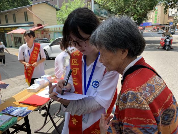 “河小禹”队员们在社区摆点宣传)