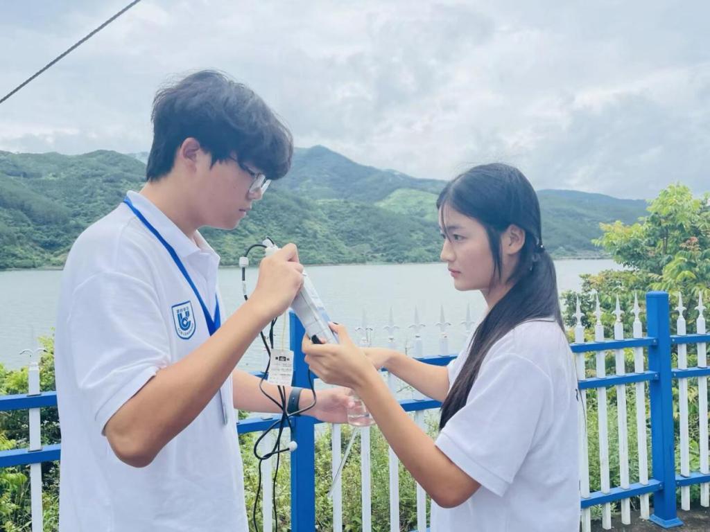 (图为“河小禹”实践队员对翠屏湖水样进行水质检测)