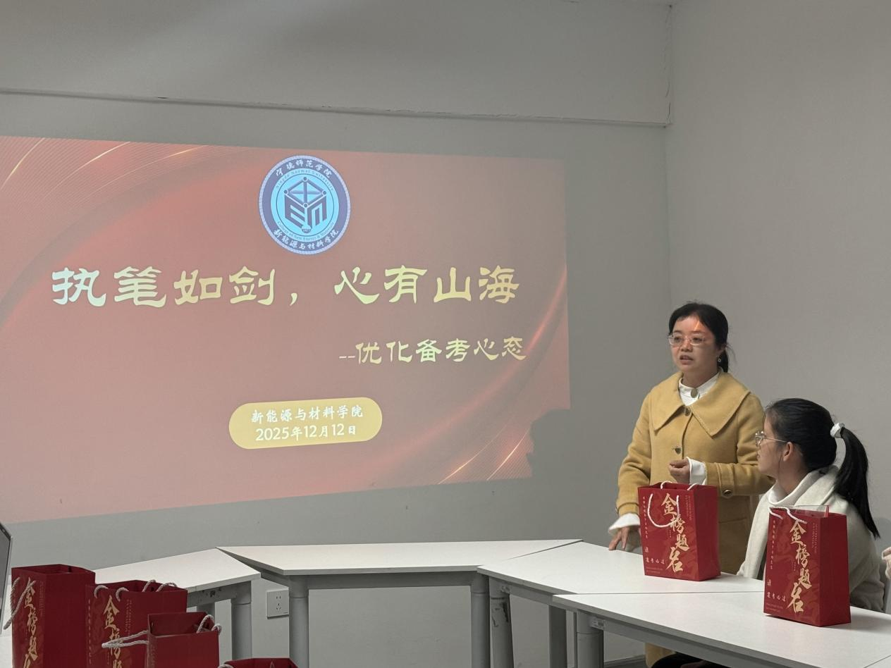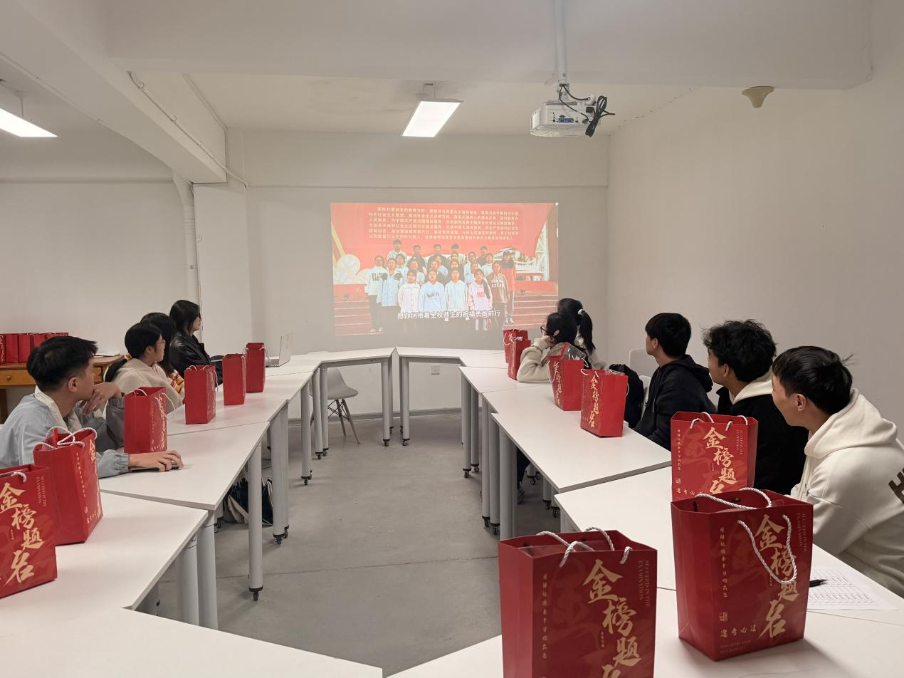 活动现场,暖意融融,爱意满满。公司党委书记郭赛玉、党委副书记彭东翔及辅导员与同学们亲切交流,询问备考情况,鼓励大家坚定信心、沉着应考。并为同学们送上寓意美好的“金榜题名”考研加油包,这份加油包,件件物品皆承载着学院对学子的深情祝福。文具,助同学们考场挥洒才情、下笔如神;橙子,寓意“心想事成”,盼逐梦顺遂无忧;柿子,象征“事事如意”。现场还播放了各班级学弟学妹们精心录制的加油视频。视频里,学弟学妹们用真诚的话语、灿烂的笑容,为考研的学长学姐们送上最诚挚的祝福,祝愿他们考研之路一帆风顺、梦想成真。