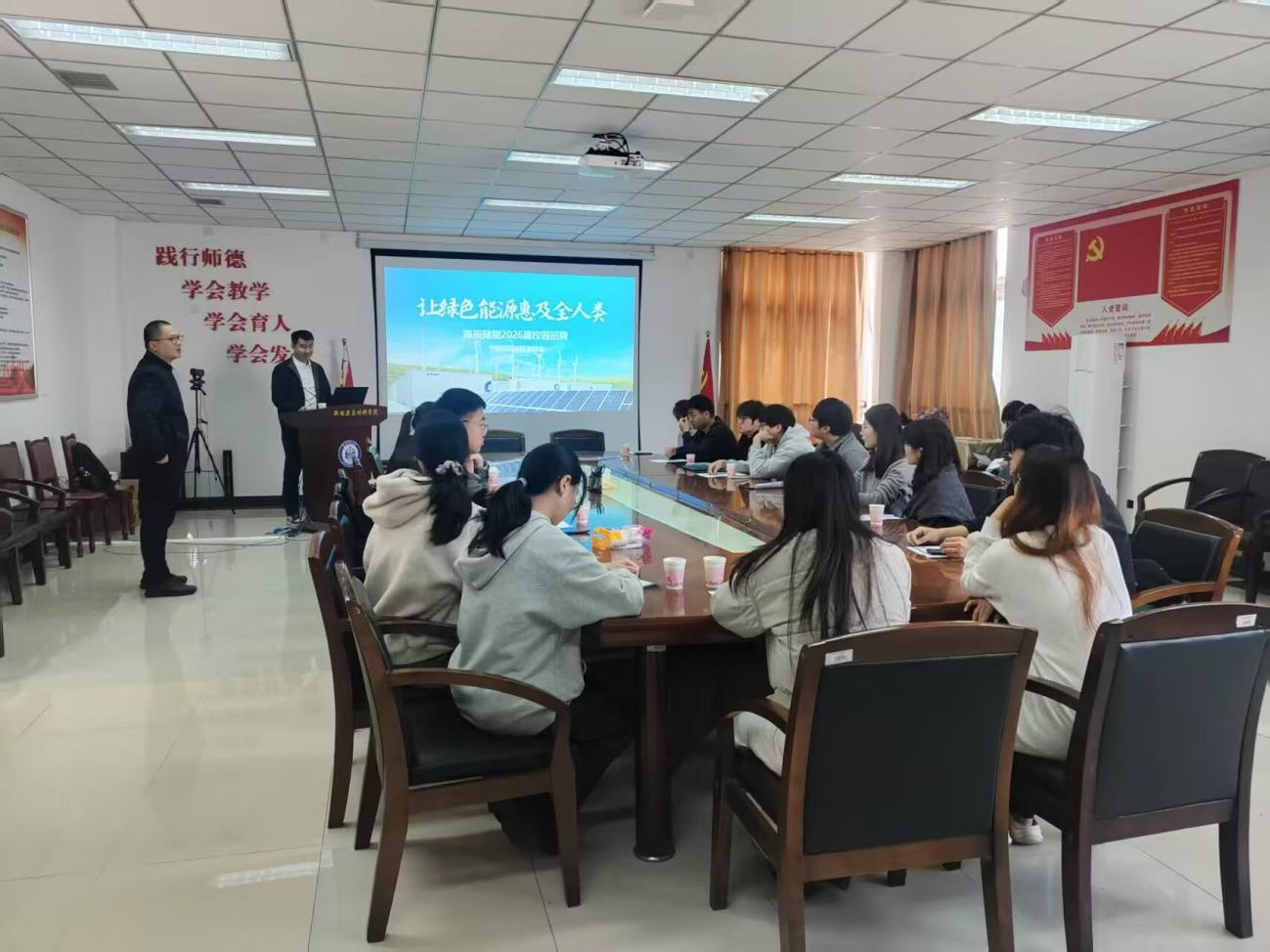 本次宣讲会由公司党委副书记彭东翔主持,学院经理黄晓辉、毕业班辅导员及部分毕业班员工共同参与。彭东翔副书记对企业一行表示欢迎,强调海辰储能与公司专业高度契合,为毕业生搭建了优质就业平台,鼓励同学们积极求职。