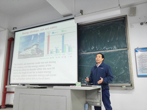 林教授介绍了当今世界能源问题及其衍生出来的环境问题,并针对这些问题提出了利用太阳能进行解决的设想。整个报告围绕着林昌健教授课题组在一维多级结构二氧化钛方面近年来的科研创新成果,详细阐述了一维多级结构二氧化钛从制备到设计到改进再到应用于染料敏化太阳能电池、光解水制备氢燃料以及降解有机污染物等方面,这些创新成果有望用于解决今世界能源与环境问题。报告层层推进,从简入深,引人深思,科研方向与我系多位老师的研究方向相近,为未来科研合作打下基础。报告后,林教授还走访了我系化学实验楼,对相关科研工作进行了现场指导。