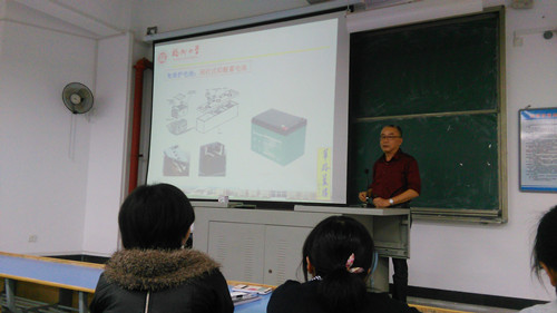 赵教授介绍了铅酸蓄电池的发展历程和重要性,新型阀控式铅酸蓄电池的技术需求,及其团队与浙江超威集团公司合作在硫酸电解液凝胶化技术研究方面取得的成果。赵教授分享了与企业合作的经验及体会,强调了在应用型研究中技术创新、观念创新的重要性。专题讲座后,赵教授还参观了我系的教师科研室,就青年教师如何开展科研工作进行指导。(谢丹华)