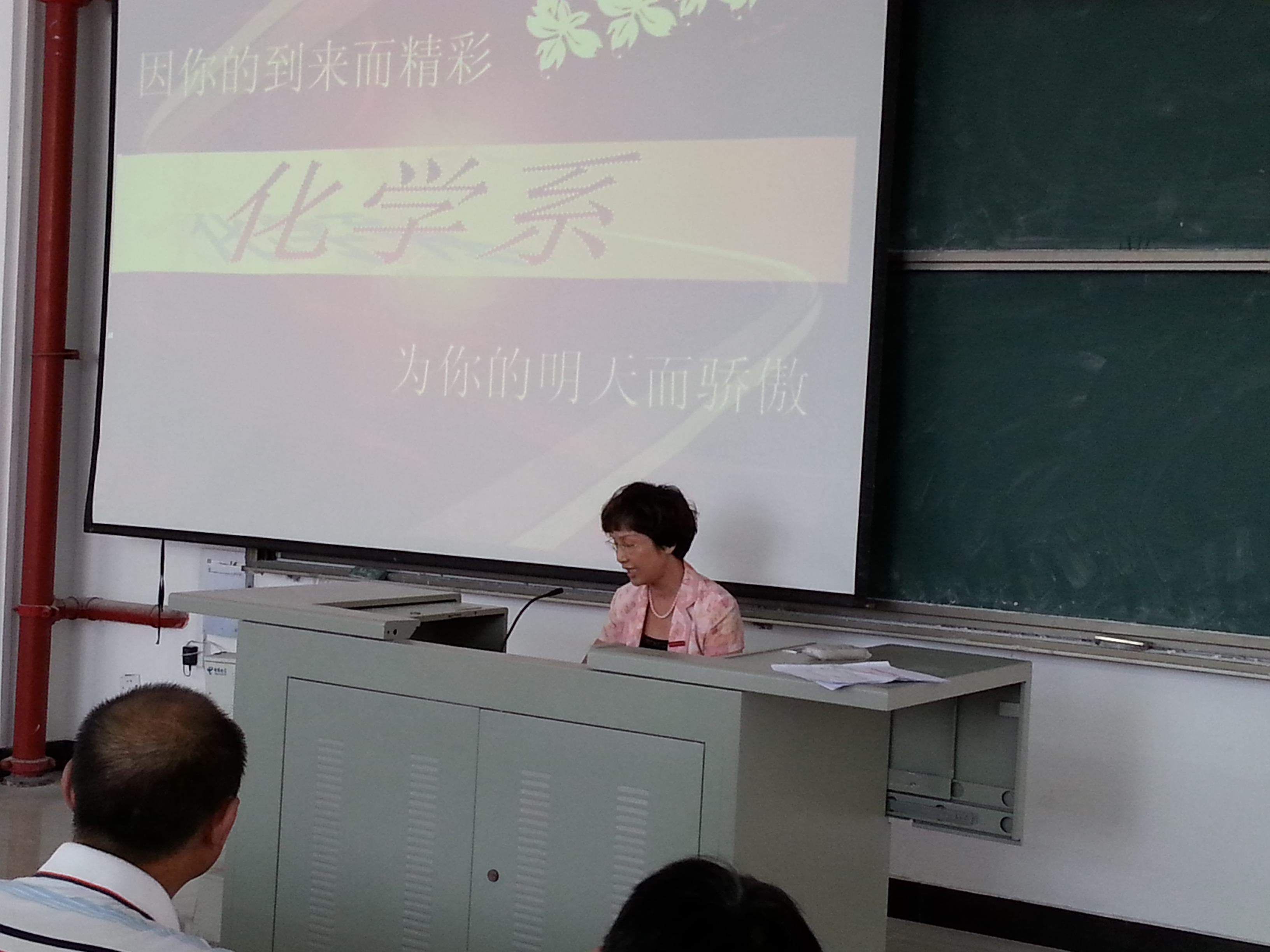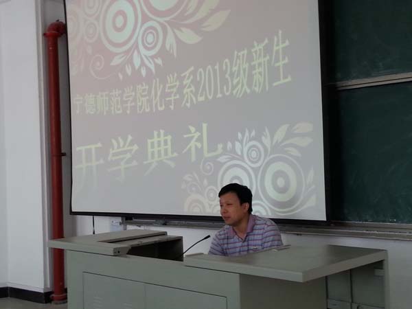 2013年9月16日上午9点,化学系2013届新生开学典礼在求实楼C区401隆重召开。出席开学典礼的主要党政领导有系党总支书记陈巧平,系主任颜桂炀,系党总支副书记、副主任游东宏、化学系副主任谢红璐等。
