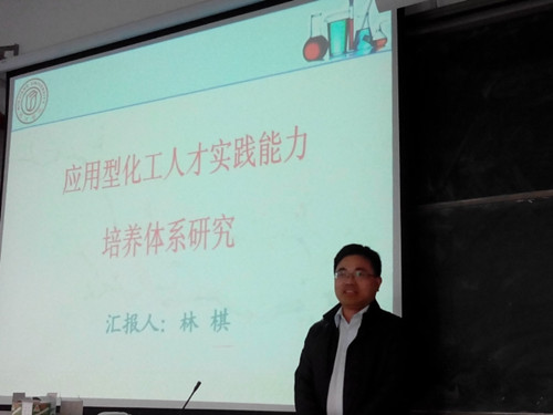 2014年4月25日下午,为了丰富校“第五届教学质量月”活动内容,闽江学院化学与化学工程系主任林棋教授受邀莅临我系召开“应用型化工人才实践能力培养体系研究”的讲座。讲座由颜桂炀主任主持,游东宏副书记等1百多位师生代表出席。
