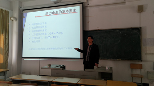 2015年12月10日下午2:30,新能源科技有限公司时玉帅高工应邀为我系师生做了一场题为《电动汽车动力电池管理系统研究进展》的讲座。讲座在求实楼CC401举行,由化学系游东宏书记主持,化学系教师和应用化学专业员工参加。
