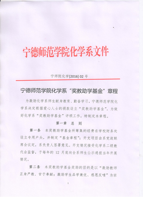 化学系奖教助学金章程