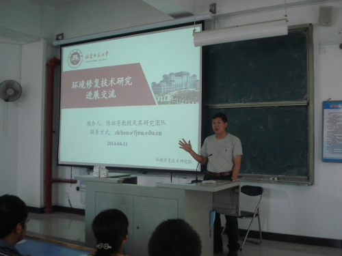10月28日下午,福建师范大学陈祖亮教授为我系师生举办了一场名为“环境修复技术研究进展交流”的讲座。陈祖亮教授是福建省“闽江学者”特聘教授、博士生导师。陈祖亮教授的研究方向包括环境分析化学、纳米生物材料、环境修复和环境能源等,已发表SCI学术英文论文180多篇,被引用次数达2543次(截止到2014年10月份),H-index超过28。