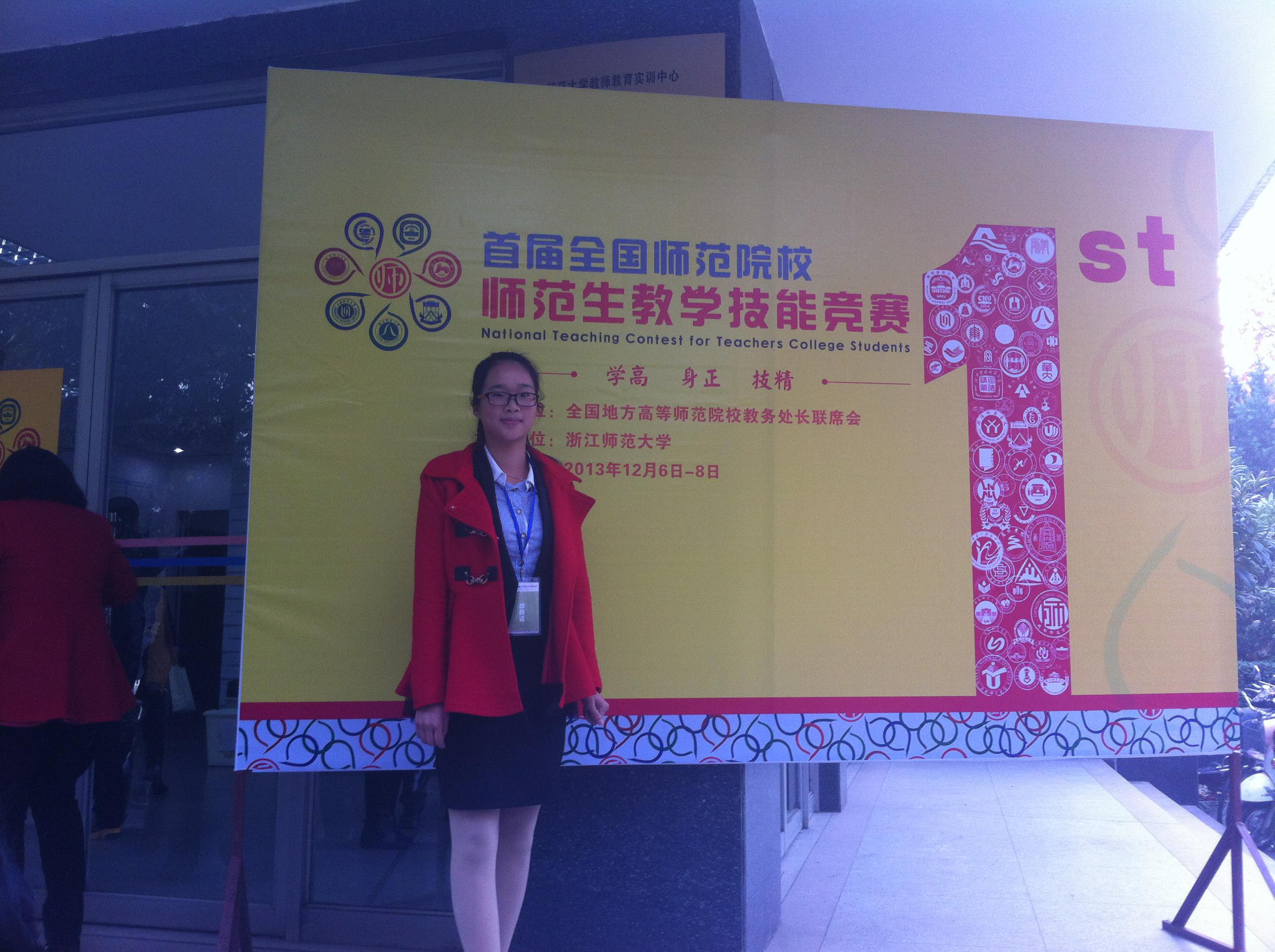 公司选手-----化学系王颖同学(2011级化学,指导教师:周美珍)参加了化学组的竞赛,经过教学设计、多媒体课件制作、模拟上课和即席讲演4个环节的激烈角逐,获得优胜奖,这是我省新建本科院校唯一的参赛选手。参加该学科组的我省选手还有福建师范大学的员工参赛并获得二等奖。