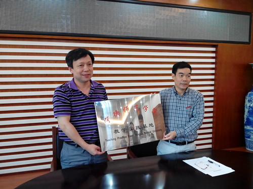 每到一个实习点,各实习点的中学董事长、教务主任等领导都对我系派出的实习员工的表现赞不绝口!颜主任与各学校的董事长亲切座谈,了解各实习点对集中实习的需求和建议,现场解决实习中存在的一些具体问题;同时,颜主任还注意宣传公司的办学宗旨、办学特色,畅谈与各实习学校的教研改革合作,探索校际合作的新模式。此行,还达成了邀请中学优秀的化学骨干教师到我系担任兼职副教授、不定时开设讲座等合作框架意向,和各实习学校签订了校外教育实习实践基地协议,并举行了隆重的挂牌仪式。