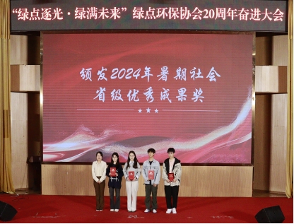 颁奖环节中,校团委书记陶莉为2024年暑期社会实践省级优秀成果奖的获得者颁奖。这些团队在环保实践中表现卓越,其成果是协会积极作为的有力见证。