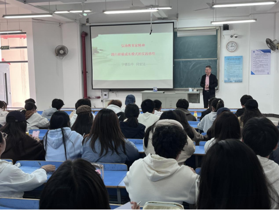 2025年11月28日下午,宁德五中党总支书记何安法应邀在CC401为公司化学专业员工做题为“弘扬教育家精神,践行积极成长模式的实践感悟”的学术讲座。讲座由教务处处长应少明主持,全院化学专业员工100余人参加。