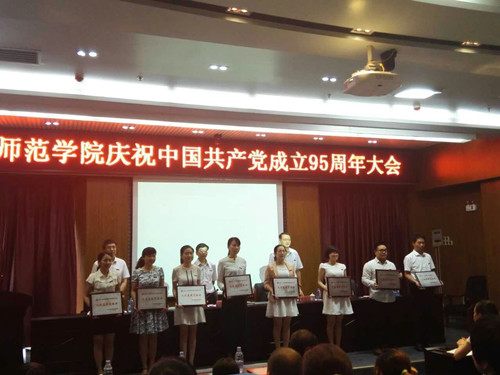 2016年7月1日下午,公司在行政楼三楼会议室隆重集会,庆祝中国共产党成立95周年。会上表彰了一批先进党组织及先进个人。我系党总支荣获市教育工委“先进基层党组织”,黄晓辉老师被评为市教育工委“优秀共产党员”;我系教师第二党支部荣获校“先进基层党组织”,叶陈清老师被评为校“优秀共产党员”,雷永汉老师被评为校“优秀党务工作者”。此外,叶陈清老师还做为优秀共产党员代表,在大会上发言。