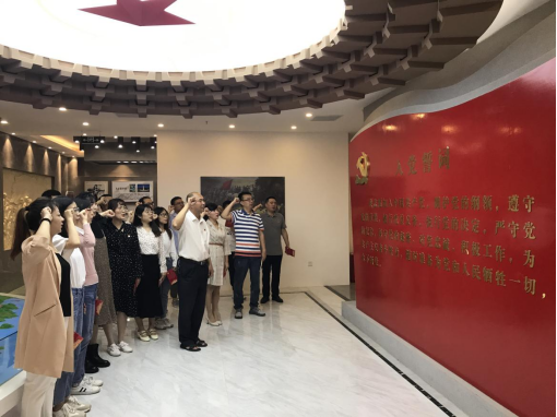 不忘初心,牢记使命,红心永向党,奋进新征程。面对鲜红的党旗,凝视金色的镰刀锤头,场面庄严肃穆,誓言铿锵有力,党员们再次重温入党誓词。在公司党委书记游东宏领誓下,全体党员高举右手庄严宣誓,表达的是信念、是承诺、是责任、是光荣,激动而自豪的声音,表达的是对党的赤胆忠心和为党的事业奋斗终身的决心。礼毕后,党员们手持分发的“政治生日贺卡”,在畅谈中同过了一次“政治生日”。