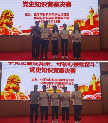 经过激烈角逐,最终“永远跟党走队”荣获一等奖,“红星闪闪”队和“爱党爱国爱学习”获得二等奖,“四有青年”队、“不忘初心赓续接力”队以及“四大材女”队获得三等奖。比赛的尾声,公司党委书记游东宏对竞赛进行了点评,用“氛围好”“参与度高”“题型丰富、设置合理”给予了充分肯定,对同学们扎实的党史知识基础和良好的政治素养给予赞扬。到场的嘉宾为6支获奖队伍进行了颁奖。