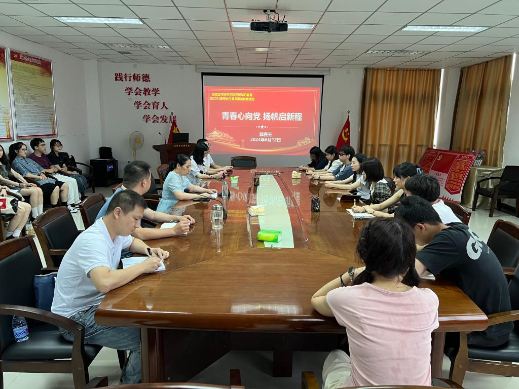 郭赛玉以“青春心向党 扬帆启新程”为主题为大家讲授专题党课。深刻剖析了14起年轻干部违纪违法典型案例,以生动的案例阐释违纪违法的危害性和严重后果,呼吁毕业生党员永葆入党初心,绷紧纪律之弦,并向毕业生们送上了诚挚的寄语。希望他们要坚定理想信念,不忘初心跟党走,严于律己,努力奋进,做一名忠诚、干净、担当的合格党员;要对标先进典范,爱岗敬业承匠心,牢记“崇德 弘毅 厚学 笃行”的校训,传承和发扬教育家精神、劳模精神、工匠精神,努力向先进典范看齐;要注重廉洁自律,清澈纯粹逐理想,注重立德修身,加强行为养成,求真学问、练真本领。
