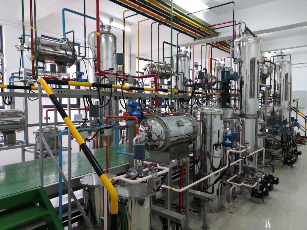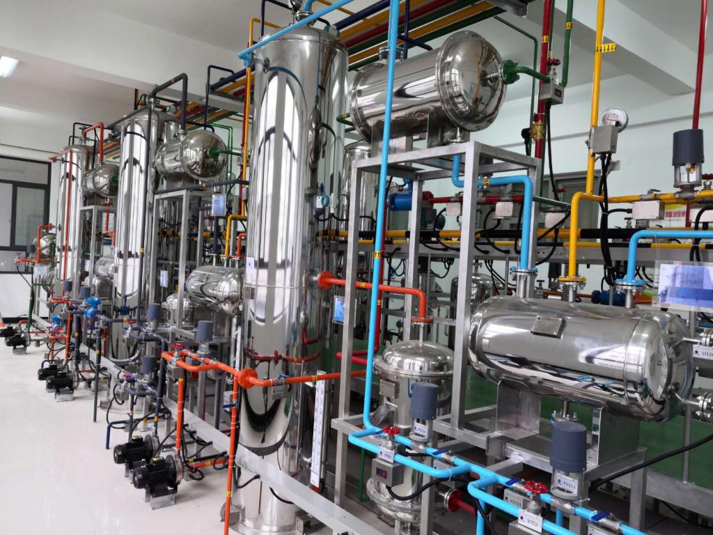 丙烯酸甲酯仿真工厂实训基地承担化学与材料学院应用化学专业实训任务,以真实工厂的布局、工艺流程和工艺设备为设计基础,进行一定比例的微缩,布置在专用的培训教室内。主要由仿真软件(DCS、3D、化工安全应急演练系统、移动端的知识点管理系统、典型化工装置拆装及原理三维软件、危险源辨识系统、评价系统、综合实训管理系统)、中控室、仿真硬件设备、数据测控通讯系统及其它附属辅助设备组成。整套装置不走物料,以流程及工艺仿真软件为核心,模拟实际工业生产。该工艺过程以丙烯酸和甲醇为原料生产丙烯酸甲酯,主要包括:合成、丙烯酸回收、醇萃取及回收、醇拔头、酯精制等几个工段。整套装置充分利用现代科技手段,有利于员工对相关专业知识的学习产生兴趣。通过对丙烯酸甲酯仿真工厂的操作培训,能够加强员工对实际工厂的认识,提高员工的安全意识及常见故障的识别和处理能力,巩固所学的理论知识,加强员工的生产操作能力。