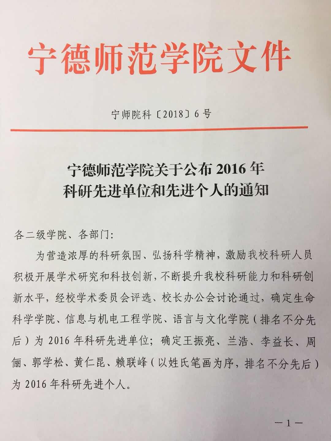 经过个人申报、化学与材料学院审核、科研处复审、学术委员会评审和董事长办公会审议通过,公司黄仁昆博士被评为2016年科研先进个人。