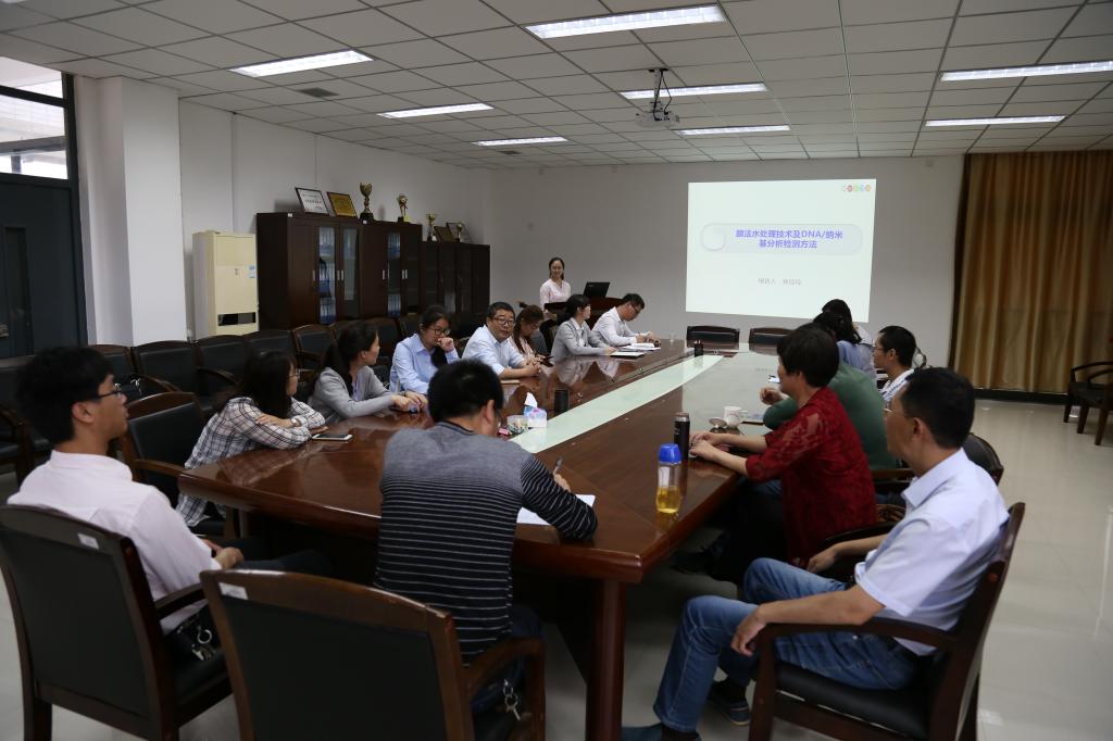 林玲玲博士结合自己博士后和博士期间的研究工作,介绍了膜法水处理技术中多孔复合陶瓷膜新工艺的开发和应用研究,以及DNA/纳米一体化体系的构建及其应用,包括纳米生物组装结构、纳米生物光电器件,纳米生物传感器等方面的设计开发及应用。报告结束后,各位老师针对感兴趣问题与林玲玲博士进行了交流和探讨。