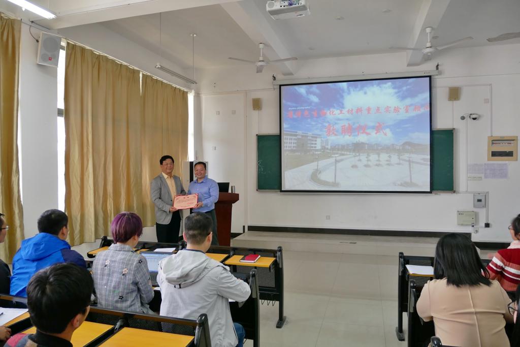 2018年4月7日,英国上市公司365原董事长林跃鑫教授受邀莅临公司交流讲学,并为公司师生做了题为“碳水化合物经济——工业生物技术与新能源新材料”的学术讲座。交流会由公司副经理应少明主持,部分在校师生参加了此次活动。活动期间,应少明副经理为林跃鑫教授颁发了“福建省特色生物化工材料重点实验室顾问”聘书。