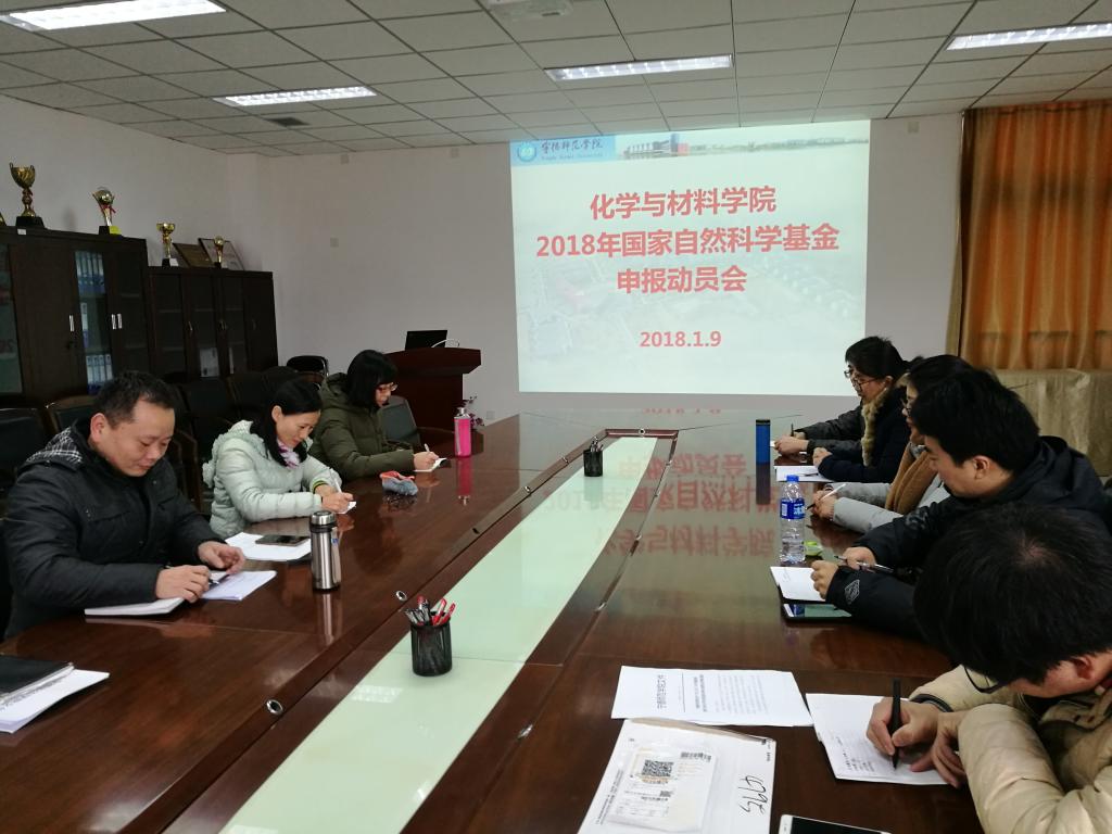 1月9日上午,根据校科研处有关会议精神,化学与材料学院在院会议室召开2018年国家自然基金申报动员会。会议由应少明副经理主持,公司拟申报2018年国家自然科学基金项目的教师参会。