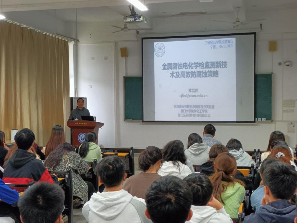 2021年10月21日上午,厦门大学特聘教授林昌健应邀莅临公司,在求实楼CC402为师生开了场题为“金属腐蚀的电化学检监测新技术及高效防护策略”的学术报告。