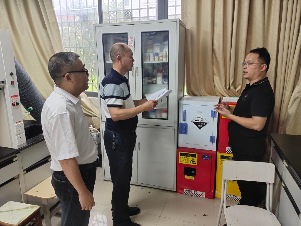 6月6日下午,院领导班子成员、实验安全督导组成员游东宏、陈峰、黄晓辉到学院实验楼对各实验室进行实验室“五双”管理安全专项检查。