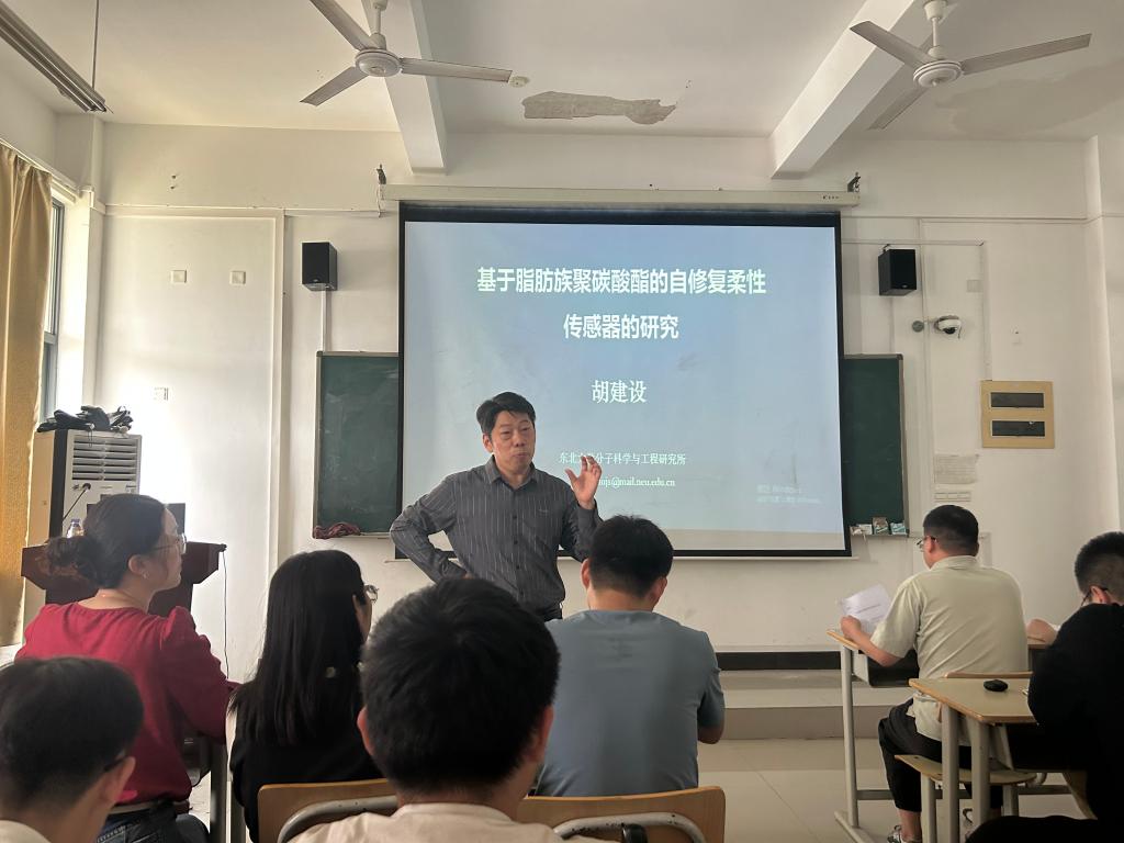 5月17日,东北大学胡建设教授应邀到公司开展题为“基于脂肪族聚碳酸酯的自修复柔性传感器的研究”的学术报告。
