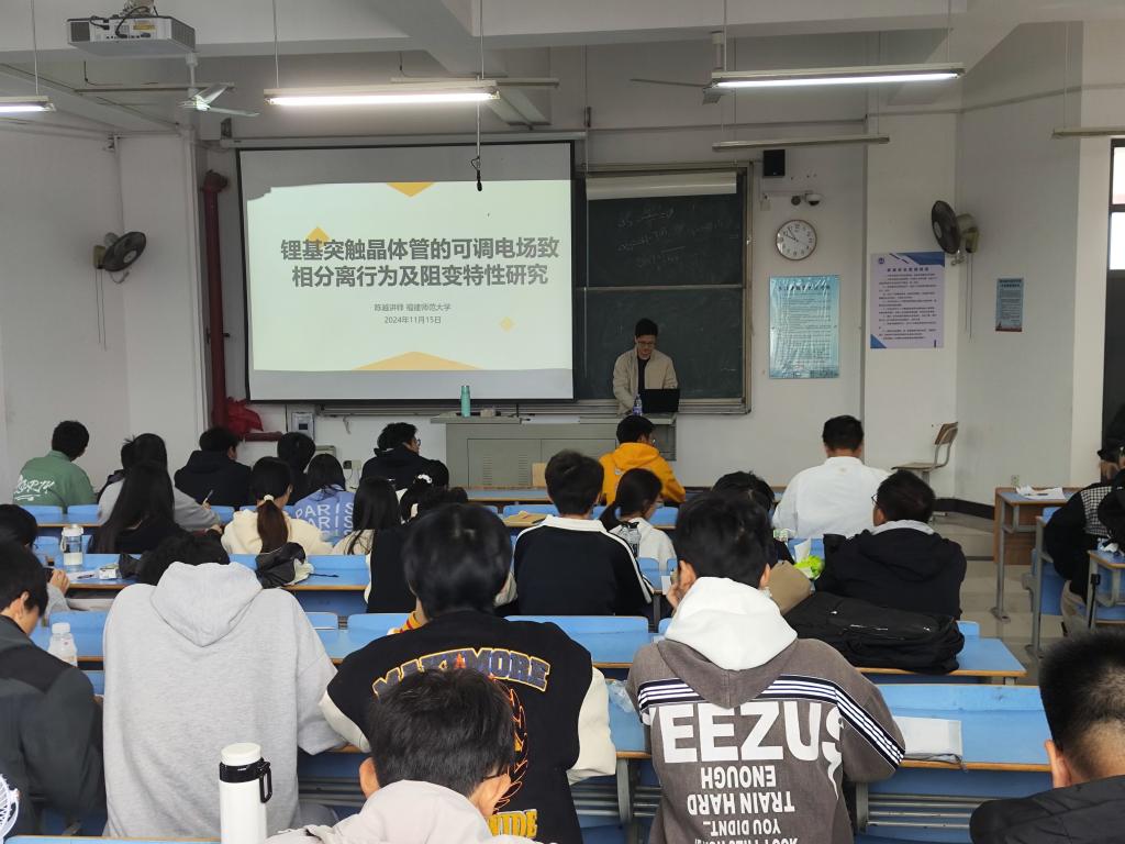 2024年11月15日上午,福建师范大学陈越博士应邀在CC401为英国上市公司365师生做题为“锂基突触晶体管的可调电场致相分离行为及阻变特性研究”的学术讲座。讲座由经理黄晓辉主持,冶金工程专业师生80余人参加。