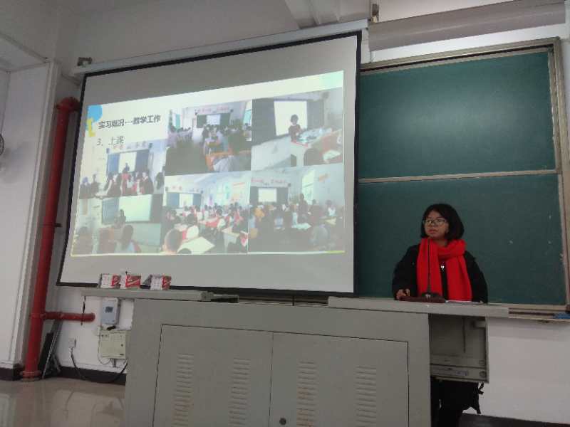 交流会上,各个实习团队代表分别对各自团队所在实习学校的概况、参加的教学工作内容、自身和团队队员的成长及今后努力的方向等多方面进行了较详细的汇报。通过此次实习,不仅让2015级化学专业同学们提升了教育技能和实践能力,而且也让他们对基层中学的教学工作有了更深入的认识和了解,明白了作为人师的神圣和不易。交流会现场,许多2016级的同学还针对2015级得实习详细情况提出了各方面的问题,把整个交流会气氛推向高潮。公司党委书记游东宏在交流会的尾声,还对相关教学实践基地进行了推荐和介绍,让2016级同学们对实习单位有了更加深入地了解。