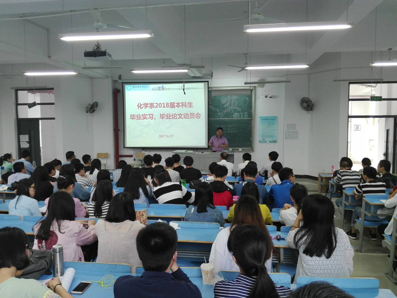 6月15日上午在化学系CC401教室召开了2018届本科生毕业论文、毕业实习动员大会。化学系党总支书记游东宏、化学系副主任应少明、化学、应用化学专业负责人、教研室主任、化学系实验室主任、14级辅导员、实习指导教师、部分毕业论文指导教师参与会议。会议由系副主任应少明主持。系总支书记游东宏首先针对实践教学重要性做了发言,他指出毕业论文、实习是培养方案中的必修环节,要求同学们高度重视并认识实习的重要意义。他指出外出实习纪律和安全的问题,强调同学们在实习中要处理好个人与实习单位的关系、个人与指导教师的关系。系实验室主任谢丹华针对14级员工在毕业论文实施过程中的注意事项做了详细说明,着重强调同学们在进行实验过程中遵守纪律,注意安全。之后两个专业实习负责人应少明教授和薛岚老师分别对应化、化学专业实习做了全面具体的部署。(应少明 供稿)