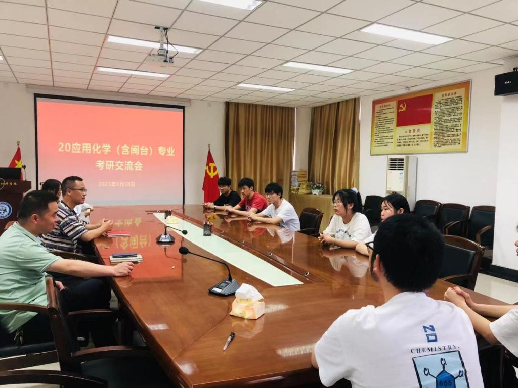 2023年4月18日,应用化学系在院会议室召开2020级应用化学专业员工考研交流会。系主任庄凰龙、学工办主任雷永汉和年级辅导员黄玉芳老师参加会议。