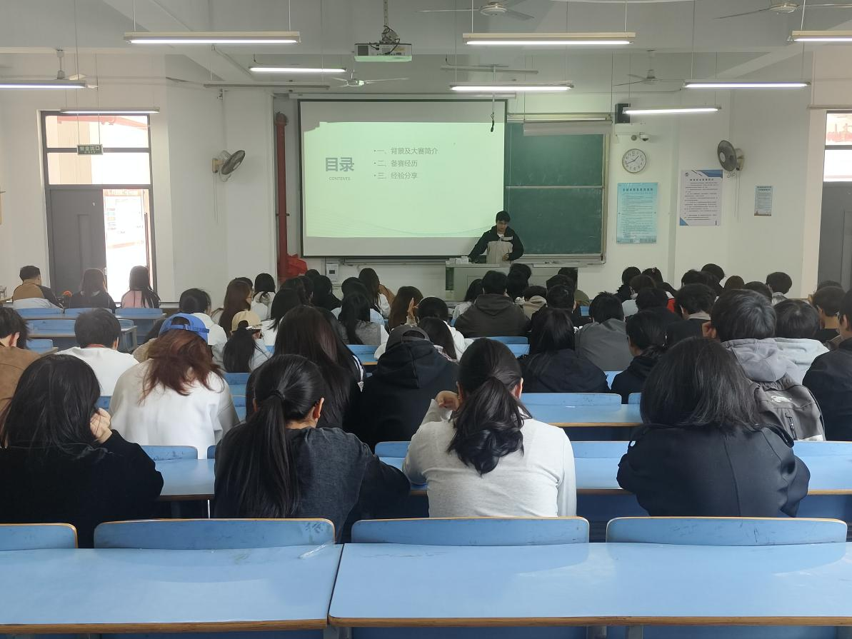 获得金相技能大赛奖项的2021级材料化学(闽台合作)班邱泽瑞、2021级冶金工程班叶竹彬、2022级冶金工程班林哲栋与洪佳茵依次上台分享。林哲栋同学结合自身经历和大家分享在金相试样的磨制、抛光中的细节与方法。洪佳茵同学则从心理调适角度出发,建议“赛前模拟训练与团队协作缺一不可”,经过不断的训练,磨制的技术也会慢慢进步,并鼓励大家积极参与。邱声瑞同学分享了他在参加金相大赛中的经历,并分享了他的磨制、抛光技巧,用幽默的话语传授给同学们经验。最后,叶竹彬同学讲述学习经验,并鼓励同学们要通过亲身实践去提升磨制技术。
