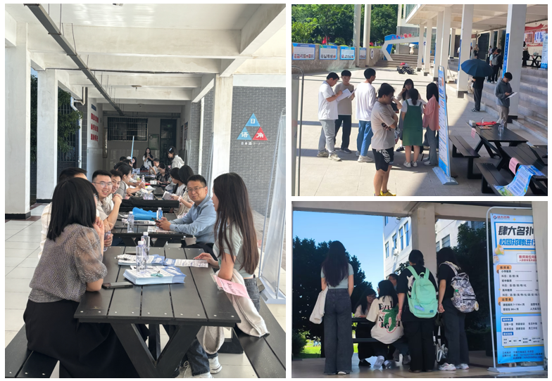 宁德市东耀环保科技有限公司、宁德市蕉城区肆大名补课外培训中心、福建文章检测技术有限公司等10家不同类型的企业参加了本次专场招聘会。招聘会现场氛围十分热烈,吸引不少毕业班同学及想要了解就业形势的非毕业班同学。同学们通过现场投递简历以及跟hr的面对面交流,主动了解岗位招聘要求、薪酬待遇、职业发展路径等相关情况,从而对自己的职业生涯有更明晰的规划。