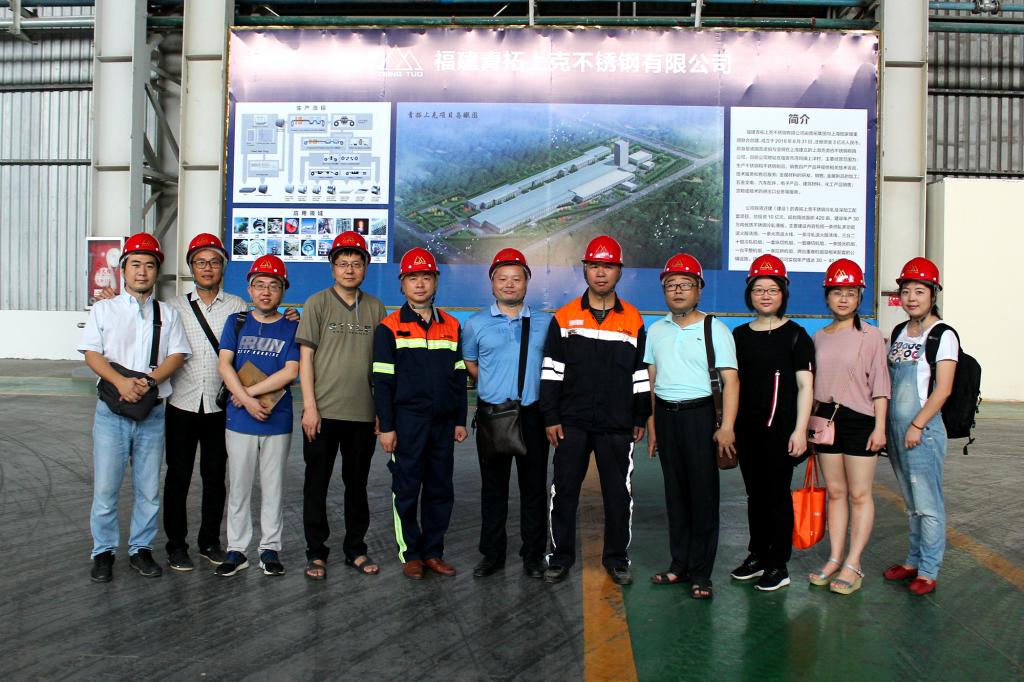 2018年6月10日上午,公司30余名师生代表在应少明副经理的带领下前往位于福安市湾坞工业园的青拓集团参观考察。考察团由公司各专业教师代表及2015级应用化学专业员工代表组成。考察团一行受到青拓集团人力资源部刘永清部长的热情欢迎和接见。刘部长首先向师生们介绍了青拓集团的生产情况,并带领大家参观了青拓研究院与展览馆。随后,教师代表们参观了青拓上克不锈钢有限公司的生产线,并与工厂技术人员进行了深入交流。与此同时,员工代表在青拓研究院的技术研发和质量检验部门进行了相关学习考察。