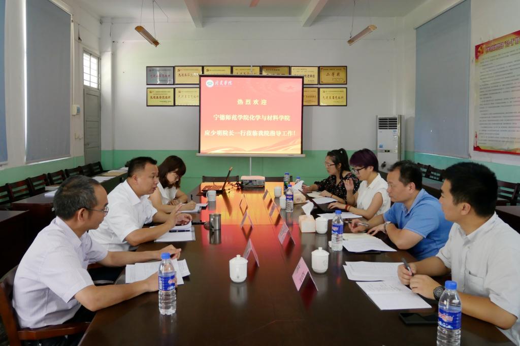 2018年6月28日下午,化学与材料学院副经理应少明教授、经理助理谢丹华副教授、材料化学系林辉博士、王佳伟博士一行四人前往龙岩学院化学与材料学院调研紫荆新材料产业学院建设情况,受到龙岩学院化学与材料学院经理胡志彪教授、副经理姜秀荣副教授、童长青教授的热诚欢迎。双方就产业学院的建设方案、人才培养模式、员工实习实践等方面进行了相互交流。