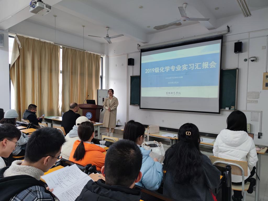 2023年2月25日上午,公司2019级化学专业教育实习总结汇报会暨优秀实习生评选会在CC402举行,公司党委书记游东宏、实习指导老师、各系系主任参加会议,会议由化学系主任王颖老师主持。 2019级化学专业实习生代表和2020级化学专业全体同学参加了此次汇报会的交流。
